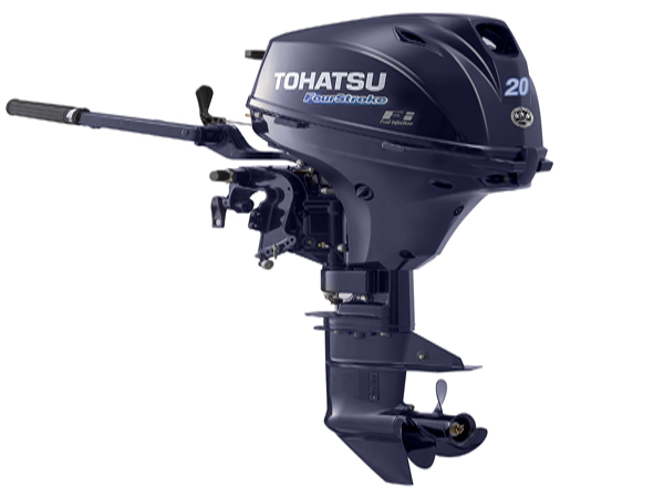 The Tohatsu 20 HP EFI outboard motor, Model #MFS20EEFTL, with the 20 inch long shaft, tiller steering, electric start with manual rope backup and power tilt is both affordable and perfect for larger sized jon boats, skiff or larger inflatable boats. Based on dependability and efficiency, Tohatsu’s 20 HP outboard was named as top choice in the 20 HP outboard motor class in Boating Magazine’s Buyer Guide. This powerful portable delivers the power you need at a price that will not break the bank.
